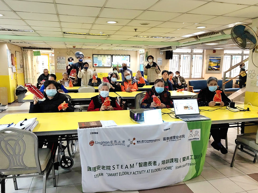 由嶺南大學 STEAM 教育及研究中心主辦,富泰護理安老院、香港長者護理協會合辦的『護理安老院 STEAM『智趣長者』培訓課程(暨員工訓練)』(第二堂)於2023年12月19日成功舉辦。